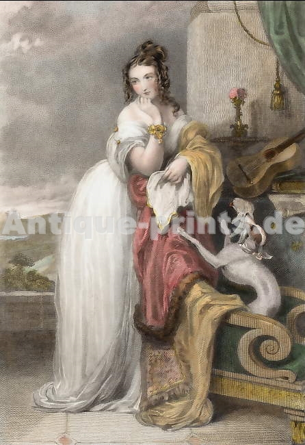 Varia. Original steel engraving engraved by W. French. ca 1840. Very good condition. Modern hand-colouring. 17x13cm. Matted.