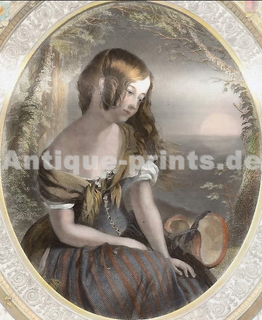 Varia. Gravure sur acier, gravée par W. Holl d´après J. G. Middleton. 1853. Très bon état. Bordure décorative. Aquarellée à la main. 16,5x13,5cm. Montée sous passe-partout.