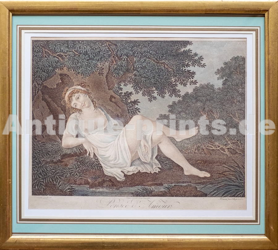 Varia. Gravure sur acier, gravée par W. Holl d´après J. G. Middleton. 1853. Très bon état. Bordure décorative. Aquarellée à la main. 16,5x13,5cm. Montée sous passe-partout.