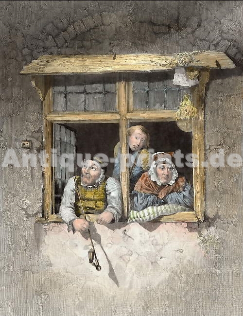 Italie. Gravure sur acier, gravée par H. Bibby d´après W. Gorburt. 1851. Très bon état. Bordure décorative. Aquarellée à la main. 19,5x12cm. Montée sous passe-partout.