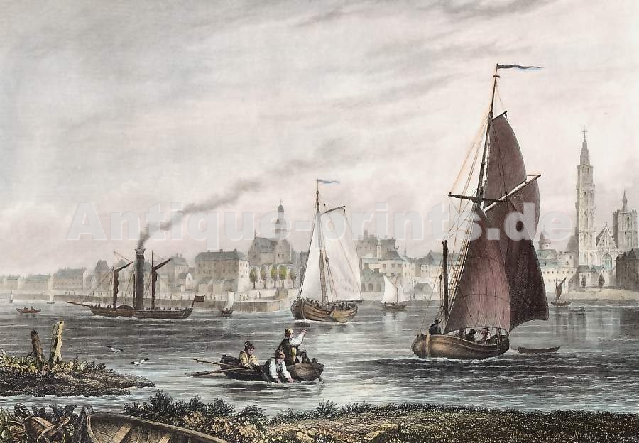 Belgique. Gravure sur bois, gravée par C. Laplante d´après C. Barclay. 1879. Légères rousseurs dans les marges. Aquarellée à la main. 19x13cm. Montée sous passe-partout.