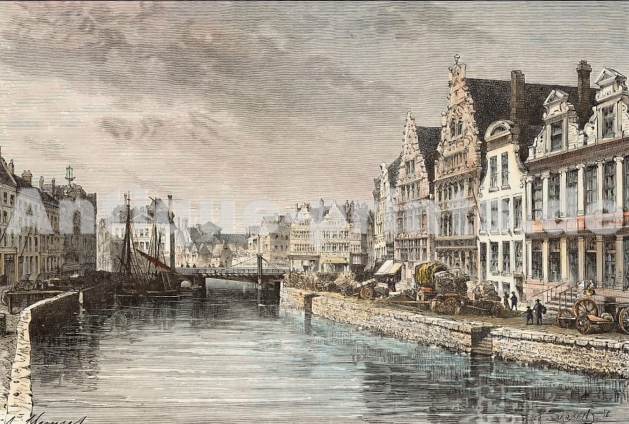 France. Original steel engraving drawn by J. D. Harding, engraved by J. T. Willmore. 1834. Very good condition. Hand-coloured. 14x9cm. Mounted.
