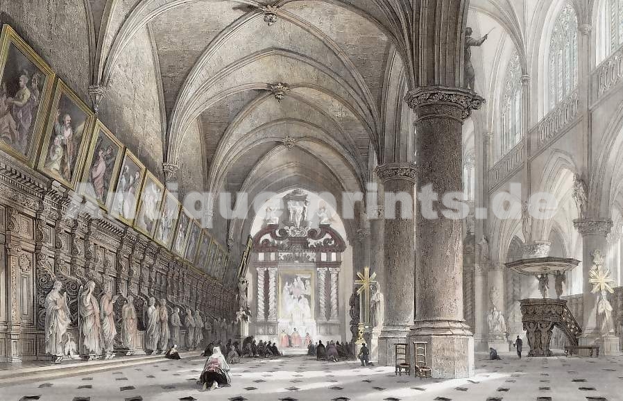 Italie. Gravure sur acier, gravée par E. Scriven d´après J. Brown. 1864. Très bon état. Bordure décorative. Aquarellée à la main. 20x15cm. Montée sous passe-partout.