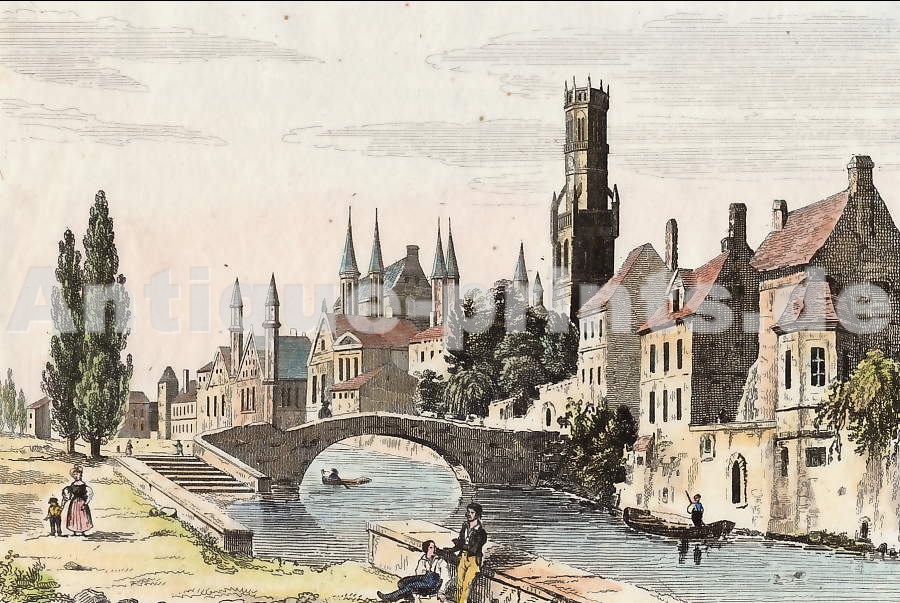 Belgium. Original steel engraving drawn by S. Prout, engraved by W. Floyd. 1832. Very good condition. Hand-coloured. 15x9,5cm. Matted.
