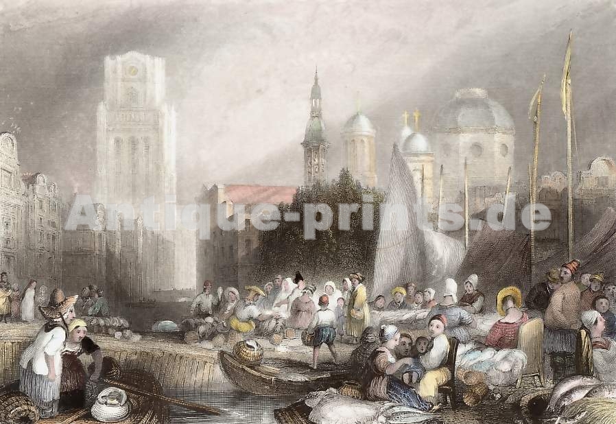 Pays-Bas. Gravure sur acier, gravée par Couché et Chamoin d´après Danvin. 1835. Très bon état. Aquarellée à la main. 15,5x10,5cm. Montée sous passe-partout.