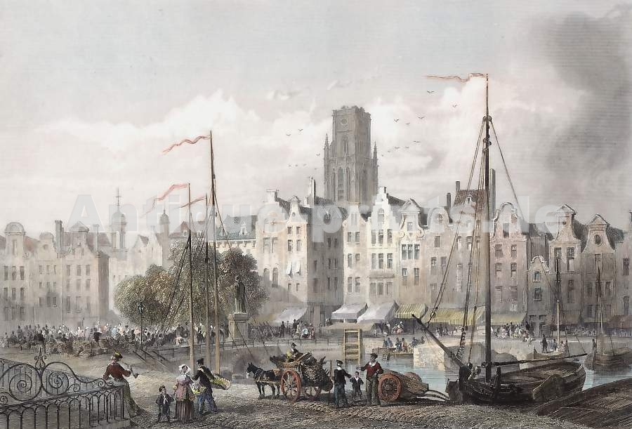 Belgium. Original steel engraving drawn by T. Allom, engraved by M. J. Starling. 1851. Good condition. Hand-coloured. 16x10,5cm. Matted.
