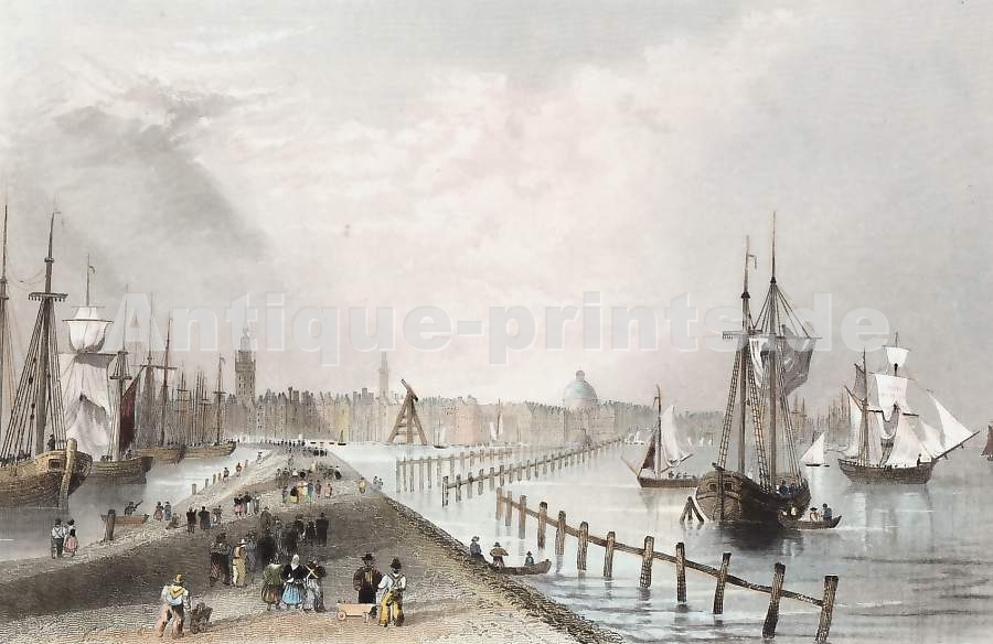 Espagne. Gravure sur acier dessinée et gravée par A. et E. Rouargue. 1851. Légères rousseurs. Aquarellage d´origine. 16,5x12cm. Montée sous passe-partout.