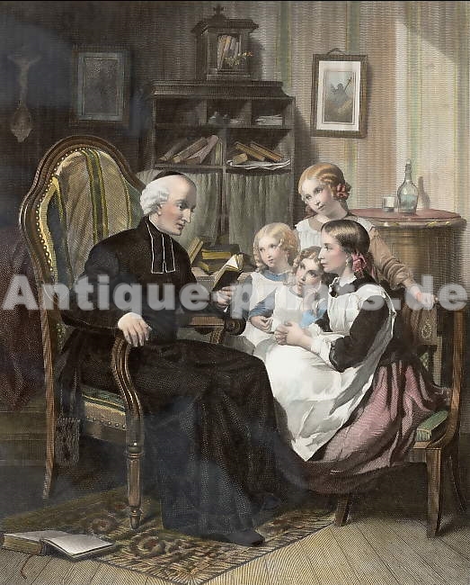 Genre. Original steel engraving, engraved by Strunz after Lenvant. ca 1850. Very good condition. Hand-coloured. 17x14cm. Matted.
