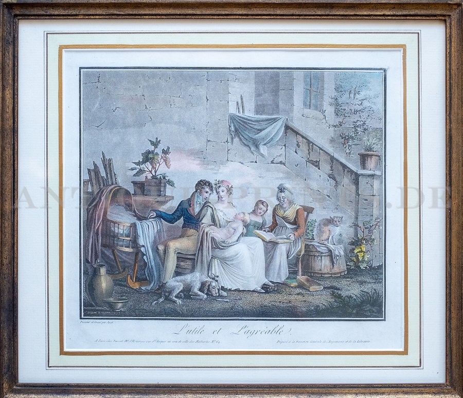 Genre. Original steel engraving, engraved by A. H. Payne after J. J. Jenkins. ca 1850. Very good condition. Hand-coloured. 17x13cm. Matted.
