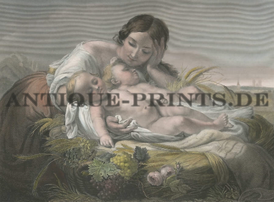 Varia. Gravure sur acier, gravée par E. Finden d´après W. P. Frith. 1853. Très bon état. Bordure décorative. Aquarellée à la main. 16,5x13,5cm. Montée sous passe-partout.