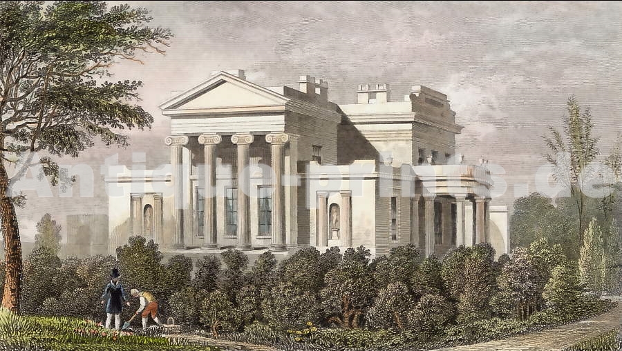 Angleterre, Londres, London, England, Gravure, Stich, Engraving, Regent´s Park, Decimus Burton, George Bellas Greenhough, Grove House