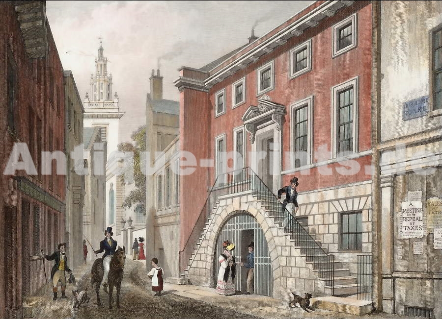 England. Original steel engraving, engraved by J. Starling after T. Allom. 1834. Spot in the right margin. Hand-coloured. 15,5x9,5cm. Matted.
