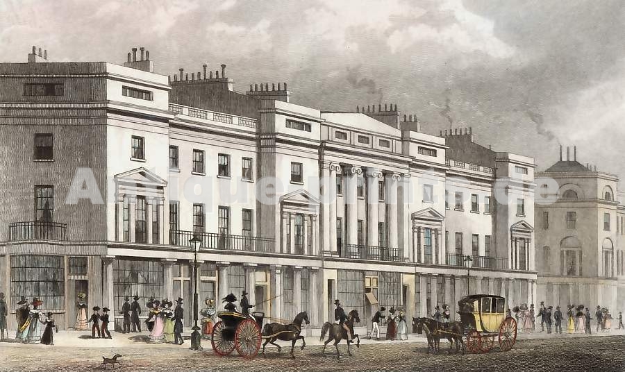 London. Original steel engraving, engraved by S. Lacey after T. H. Shepherd. 1828. Very good condition. Hand-coloured. 14,5x9cm. Matted.