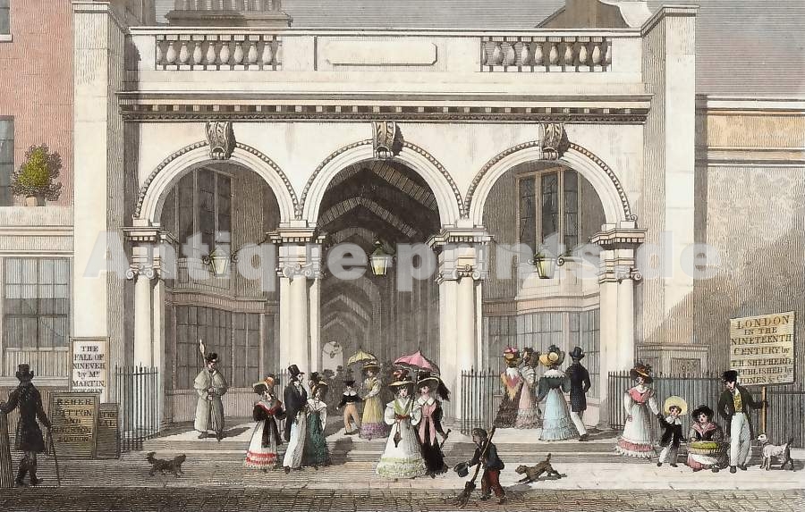London. Original steel engraving, engraved by W. Woolnoth after T. H. Shepherd. 1829. Very good condition. Hand-coloured. 14,5x9,5cm. Matted.