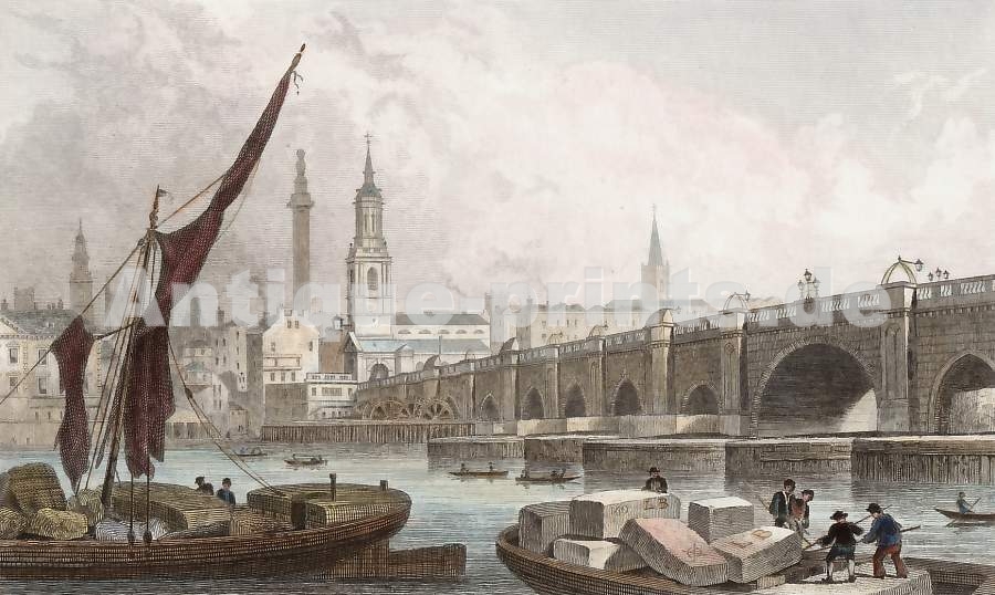 London. Original steel engraving, engraved by W. Watkins after T. H. Shepherd. 1829. Very good condition. Hand-coloured. 14,5x12cm. Matted.