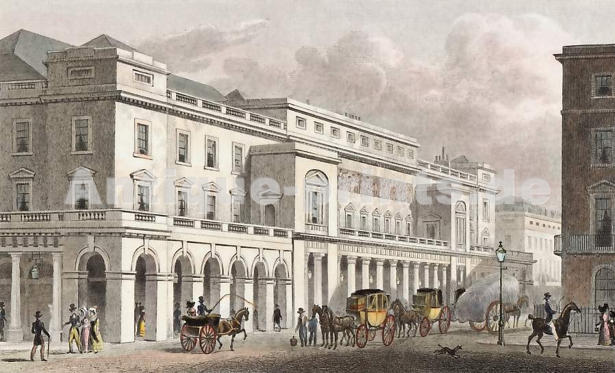 London. Original steel engraving, engraved by H. Melville after T. H. Shepherd. 1841. Good condition, small spots in the left margin. Hand-coloured. 18,5x12,5cm. Matted.