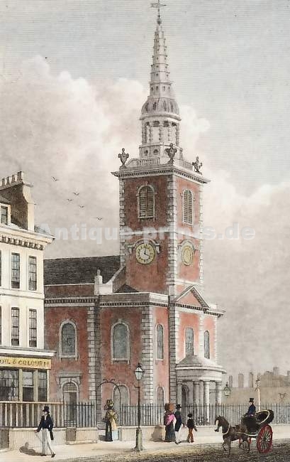 London. Original steel engraving, engraved by A. Cruse after T. H. Shepherd. 1830. Very good condition. Hand-coloured. 10x6,5cm. Matted.