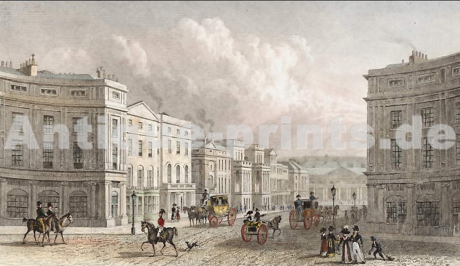 London. Original steel engraving, engraved by W. Wallis after T. H. Shepherd. 1827. Very good condition. Hand-coloured. 15x8,5cm. Matted.