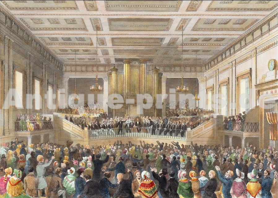 England. Original steel engraving drawn by Hablot Browne, after a sketch by R. Garland, engraved by J. Woods. 1838. Very good condition. Hand-coloured. 15x10cm. Matted.