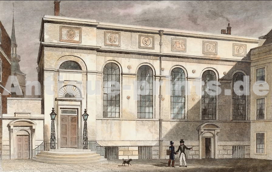 London. Original steel engraving, engraved by R. Acon after T. H. Shepherd. 1829. Very good condition. Hand-coloured. 10,5x6,5cm. Matted.