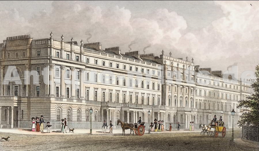 London. Original steel engraving drawn by T. H. Shepherd, engraved by T. Higham. 1828. Very good condition. Hand-coloured. 14,5x9cm. Matted.