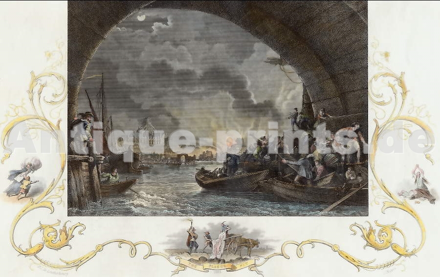 London. Original steel engraving, engraved by R. Acon after T. H. Shepherd. 1829. Very good condition. Hand-coloured. 10,5x6,5cm. Matted.