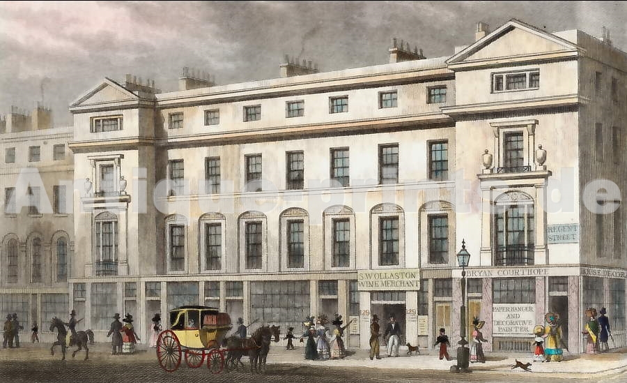 London. Original steel engraving, engraved by W. Deeble after T. H. Shepherd. 1828. Good condition. Hand-coloured. 14x9cm. Matted.