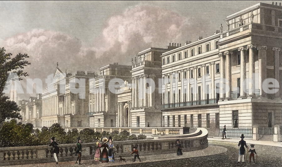 London. Original steel engraving, engraved by W. H. Lizars after W. Banks. 1850. Very good condition. Decorative border. Hand-coloured. 18x9,5cm. Matted.