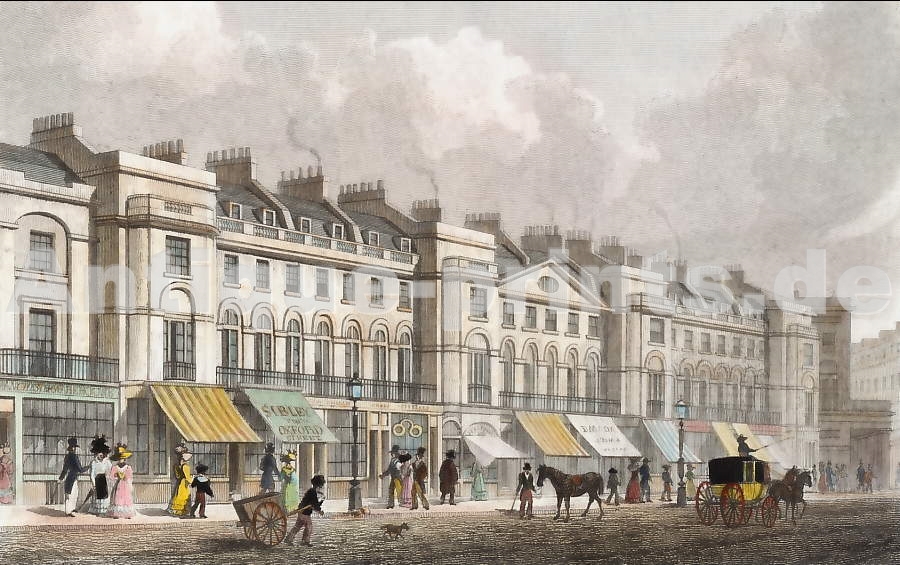 London. Original steel engraving, engraved by (M. J. Starling) after T. H. Shepherd. 1831. Very good condition. Hand-coloured. 9,5x6,5cm. Matted.