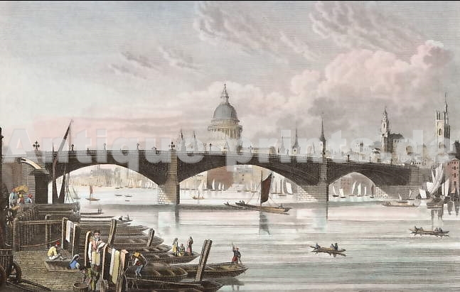 London. Original steel engraving, engraved by W. Wallis after T. H. Shepherd. 1827. Very good condition. Hand-coloured. 15x8,5cm. Matted.