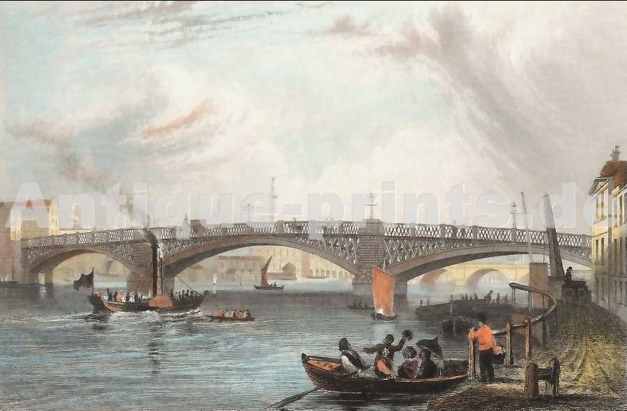 London. Original steel engraving, engraved by W. Deeble after T. H. Shepherd. 1828. Very good condition. Hand-coloured. 14,5x9cm. Matted.