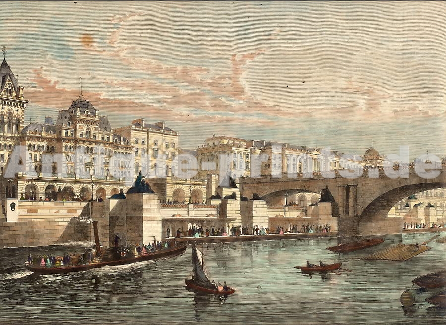 Paris. Original steel engraving, engraved by J. Huguenet after A. Testard. 1853. Good condition. Hand-coloured. 13,5x9,5cm. Matted.