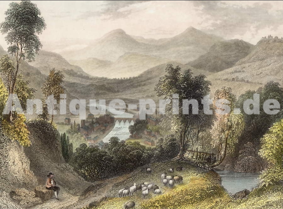 England. Original aquatint by Thomas Rownaldson. 1817. Good condition. Original hand-colouring. 20x11,5cm. Matted.