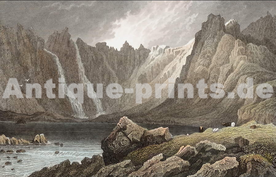 Spain. Original steel engraving drawn by D. Roberts, engraved by J. H. Kernot. 1837. Very good condition. Small margins, as published. Modern hand-colouring. 16x10cm. Matted.