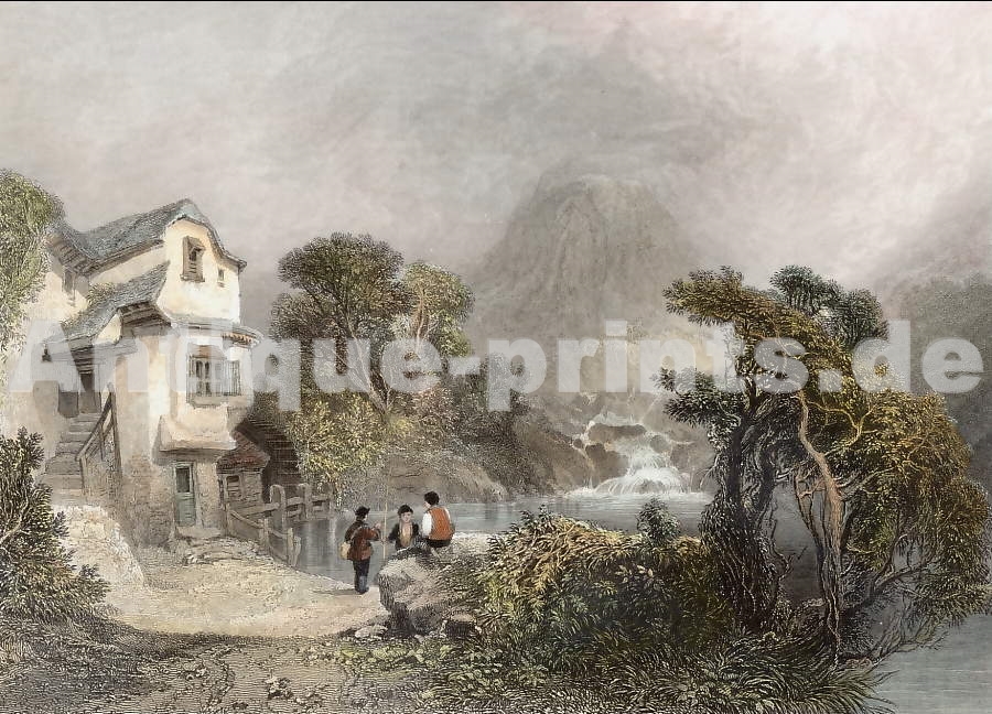 Wales. Original steel engraving drawn by W. H. Bartlett, engraved by J. C. Armytage. 1841. Good condition. Hand-coloured. 18x12cm. Matted.
