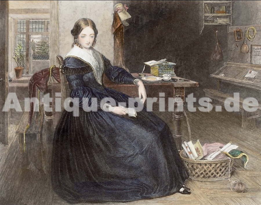 Germany. Original steel engraving, engraved by J. Carter after L. Richter. 1847. Very good condition. Hand-coloured. 16x10,5cm. Matted.