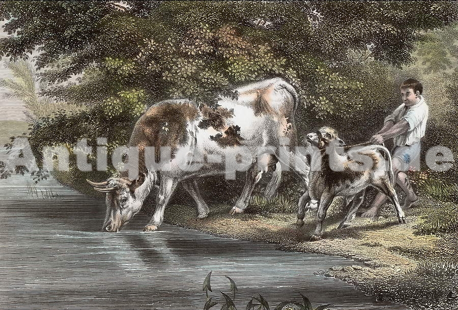Schweiz. Stahlstich von Pollet nach A. Johannot. 1840. Sehr guter Zustand. Handkoloriert. 12,5x7,5cm. Mit Passepartout.