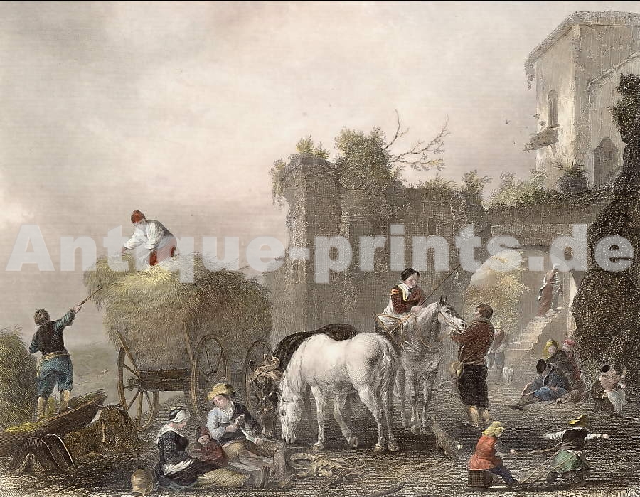 Gravure, Stich, Engraving, Genre, Campagne, Country, Landschaft, Heuernte, Harvest, Moisson