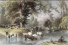 Reiten. Stahlstich von E. Hacker nach H. Hall. 1851. Ohne unteren Rand, wie publiziert. Handkoloriert. 14,5x10cm. Mit Passepartout.