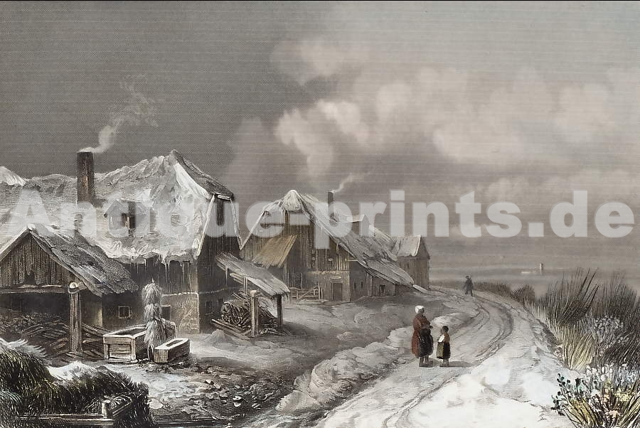Varia. Stahlstich von T. Heawood nach H. Bürckel. ca 1850. Kleiner Fehler im Himmel. Handkoloriert. 16x10,5cm. Mit Passepartout.