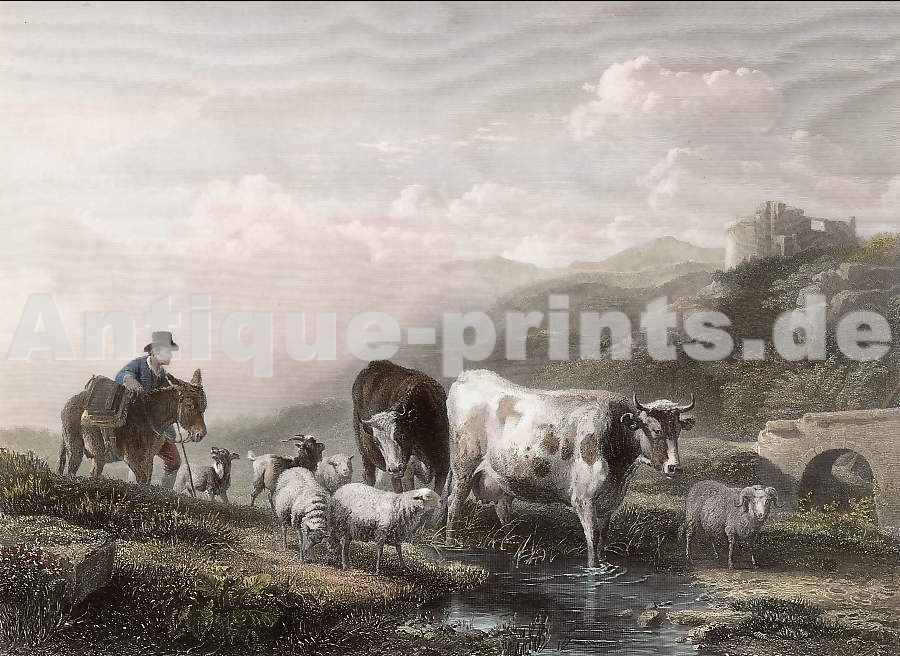 England. Original miniature on steel by A. H. Payne. 1847. Very good condition. Modern hand-colouring. 8,5x6cm. Matted.