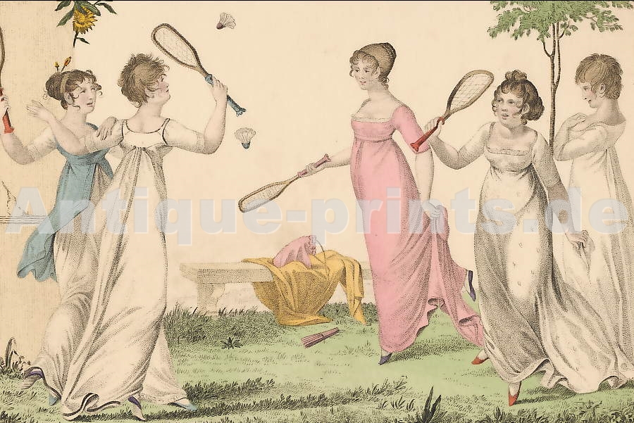 Paris. Eau-forte de E. Doistau, imprimée par R. Tanburro et aquarellée à la main au pochoir par J. Saudé. 1931. Très bon état. 25x21,5cm. Très belle réimpression à 760 exemplaires numérotés du fameux recueil de P. de la Mésangère, Observations sur les Modes et Usages de Paris, dessins de Vernet, Bosio, Lanté, Dutailly... , Paris, 1827.