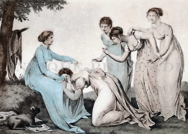 Genre. Gravure sur acier, gravée par C. Roll d´après P. Williams. ca 1855. Très bon état. Aquarellée à la main. 25,5x20,5cm. Montée sous passe-partout.