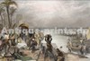 Indiens De La Floride Tuant Un Crocodile Au Tems De La Conquête