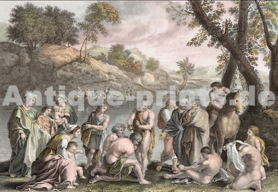 Jordan. Original multi-view steel engraving drawn by J. A. Houston, after Laborde, engraved by J. H. Le Keux. 1855. Good condition. Hand-coloured. 21x12cm. Matted.