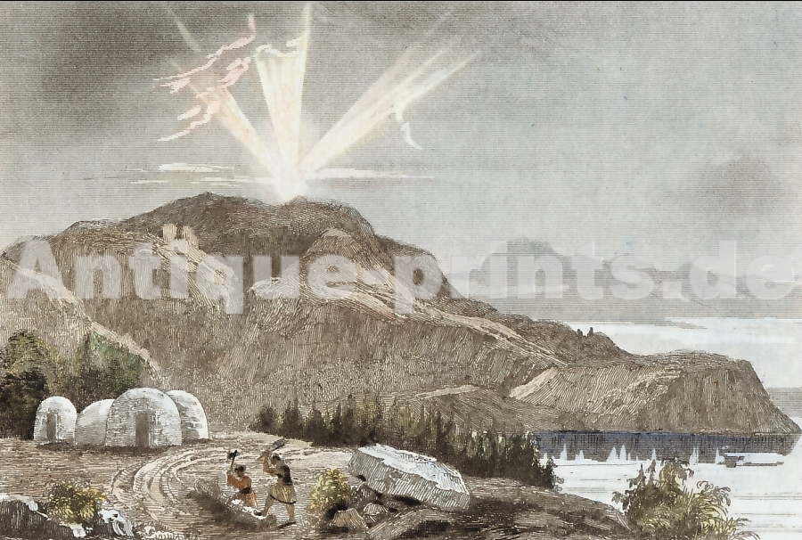 Gravure, Marine, Engraving, Polen, Pole, Pôle, Nordlicht, Aurora Borealis