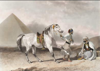 Aegypten. Holzstich gezeichnet von E. Breton. 1846. Sehr guter Zustand. Handkoloriert. 15,5x10cm. Mit Passepartout.