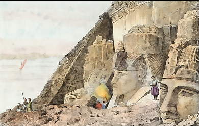 Ägypten. Stahlstich von W. Finden nach C. Standfield. 1862. Sehr guter Zustand. Handkoloriert. 15x9,5cm. Mit Passepartout.