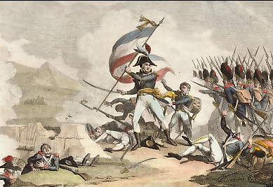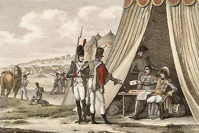 Militaria. Radierung gestochen von Couché Fils. 1807. Sehr guter Zustand. Historische Notizen auf französisch unter dem Bild. Handkoloriert. 13x9cm. Mit Passepartout.