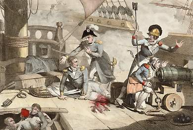 Maritim. Radierung von Pourvoyeur nach Lafitte. 1807. Sehr guter Zustand. Historische Notizen auf französisch unter dem Bild. Handkoloriert. 13x9cm. Mit Passepartout.